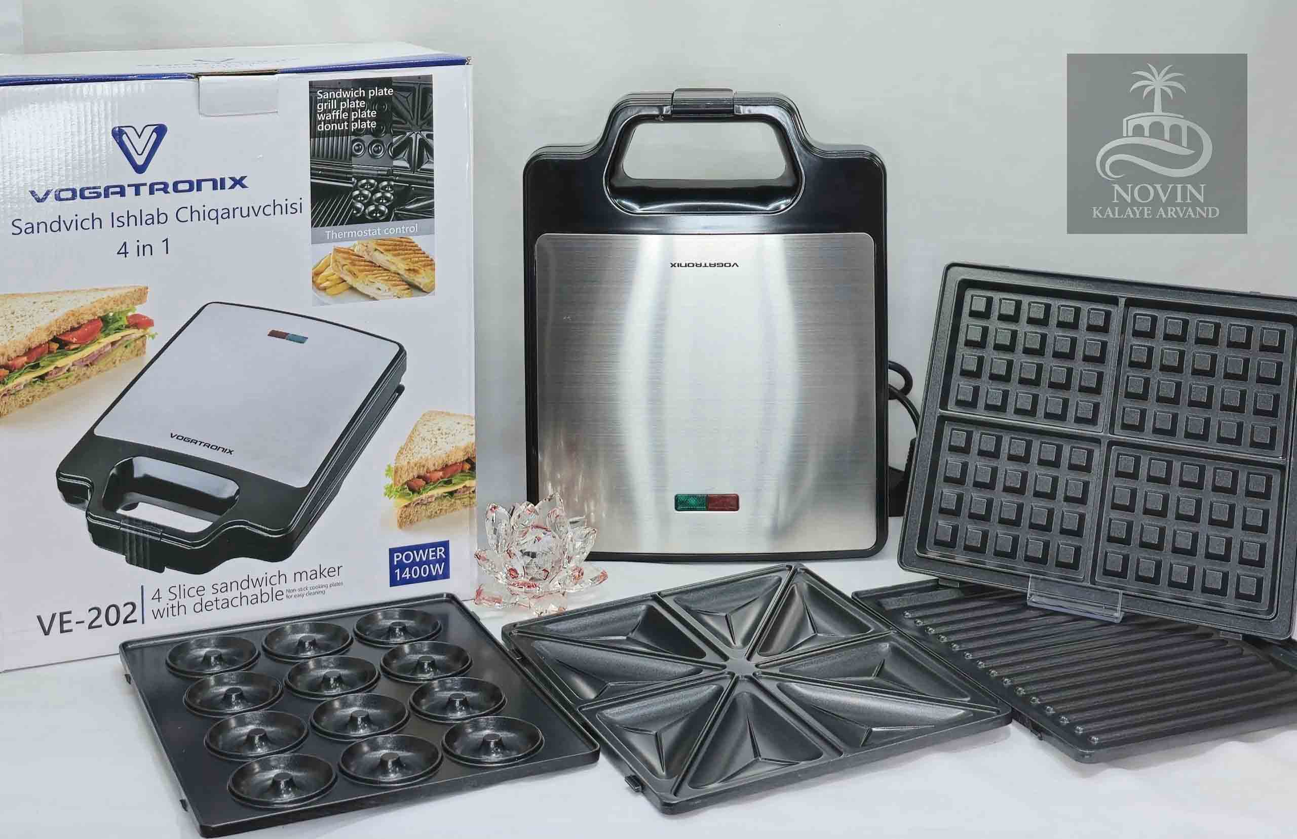 دارای چهار صفحه با کاربرد های ساخت ساندویچ – گریل – وافل و دونات